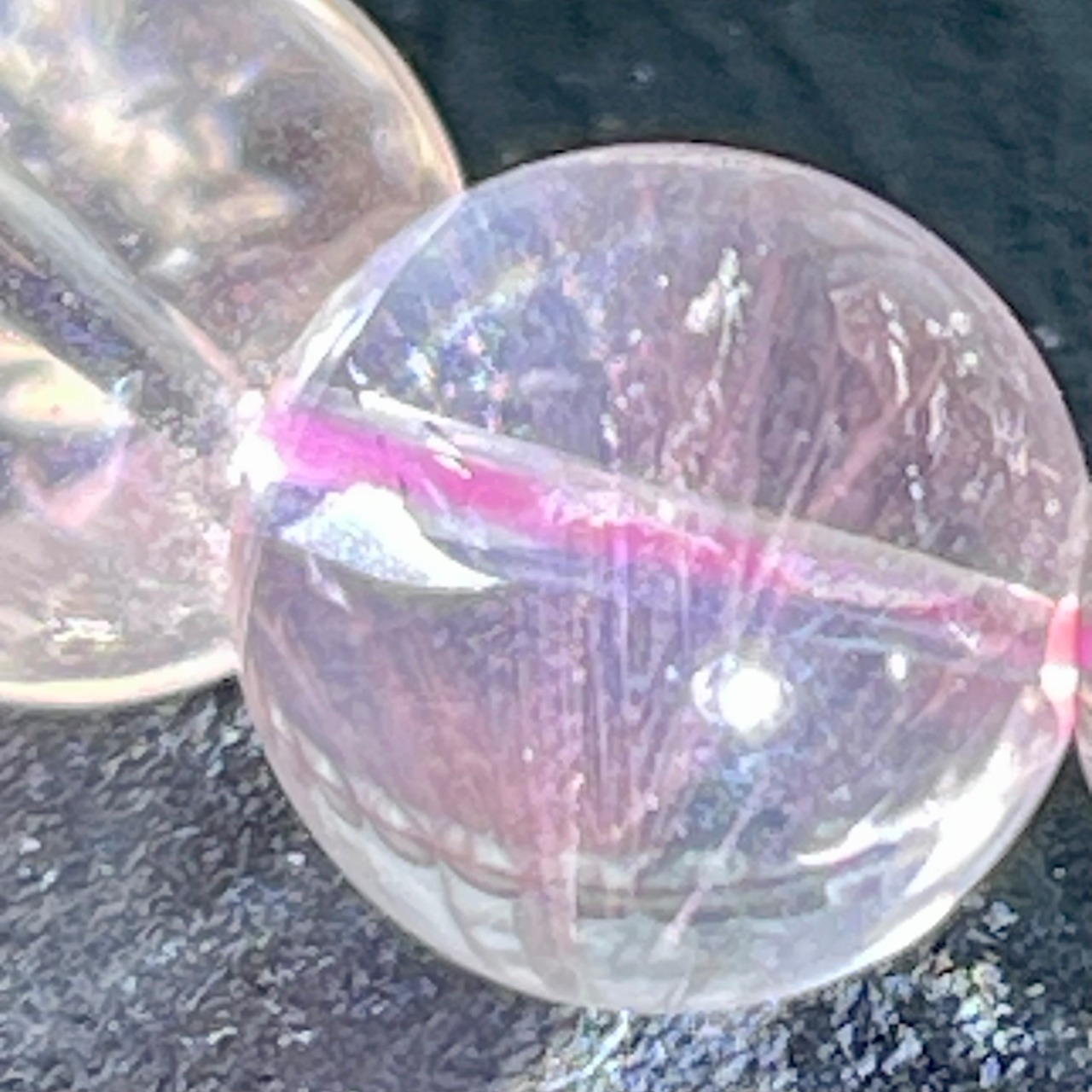 強い光が当たるとピンクの天使の梯子が現れ、その様子は大変に美しい。