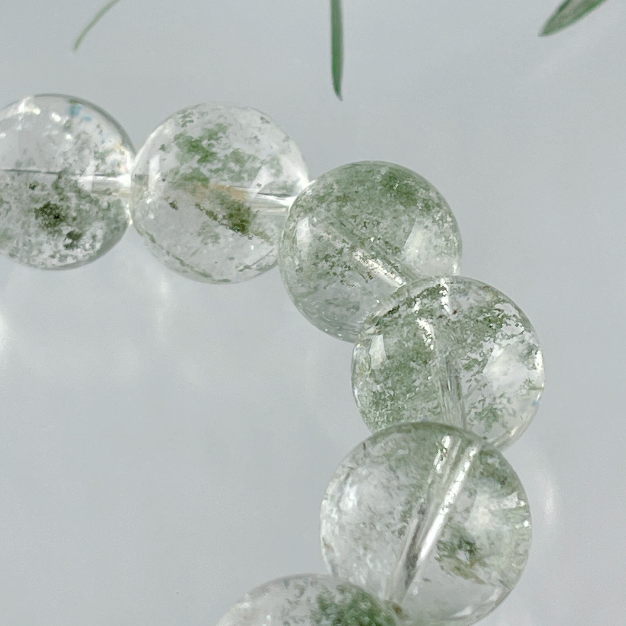 ガネーシュヒマール産水晶によくある星屑キラキラの内包物、レインボーの見えるビーズもあります。