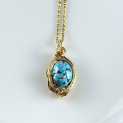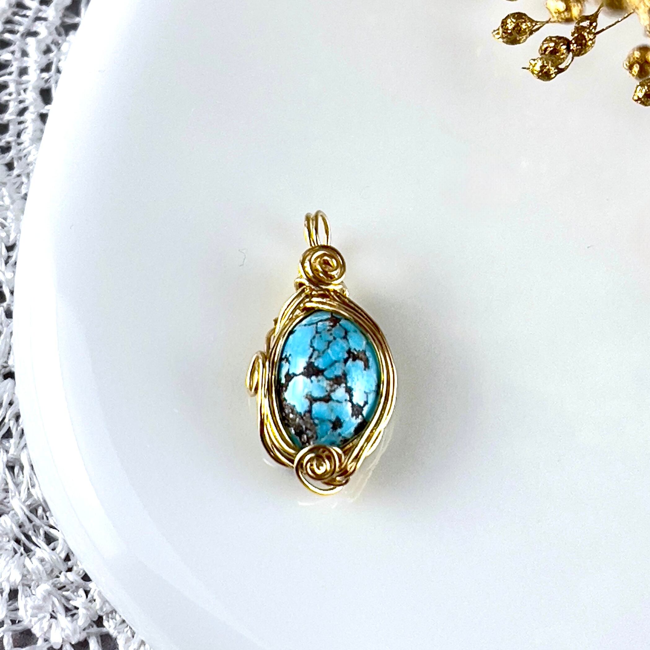 12月の誕生石✨天然無着色スパイダーターコイズ ワイヤーラッピングペンダントトップ